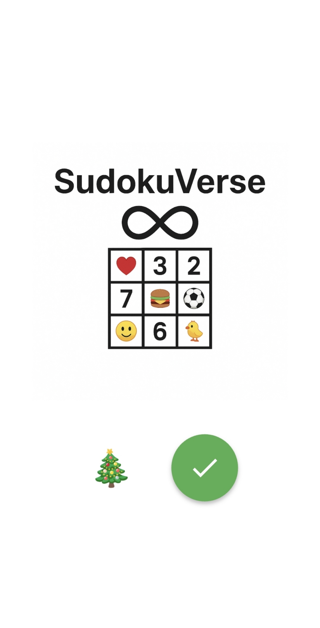Solve classic 9×9 Sudoku grids, switch numbers to emoji symbols, and enjoy a cosy Xmas theme with subtle confetti effects.