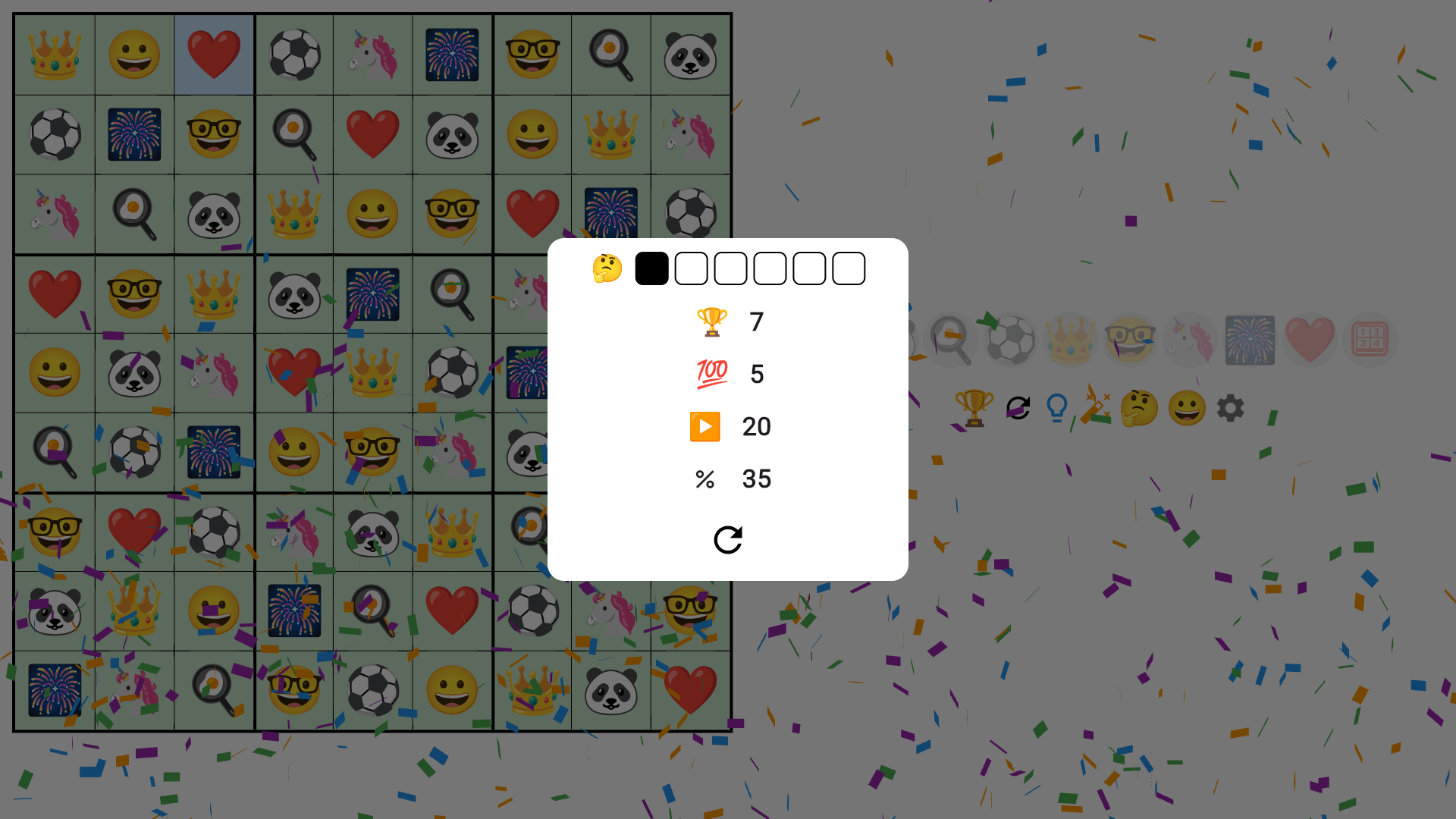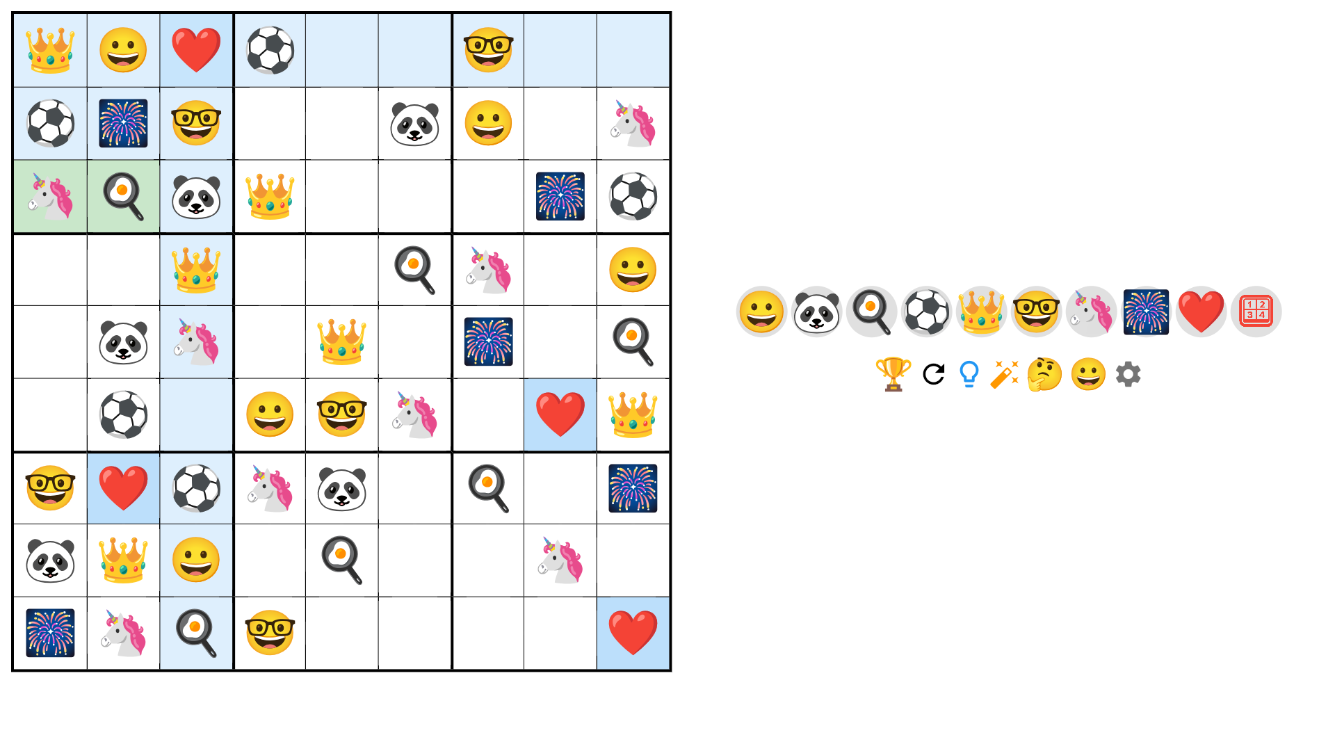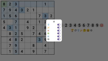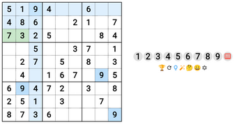 Solve classic 9×9 Sudoku grids, switch numbers to emoji symbols, and enjoy a subtle confetti celebration when you finish a puzzle.