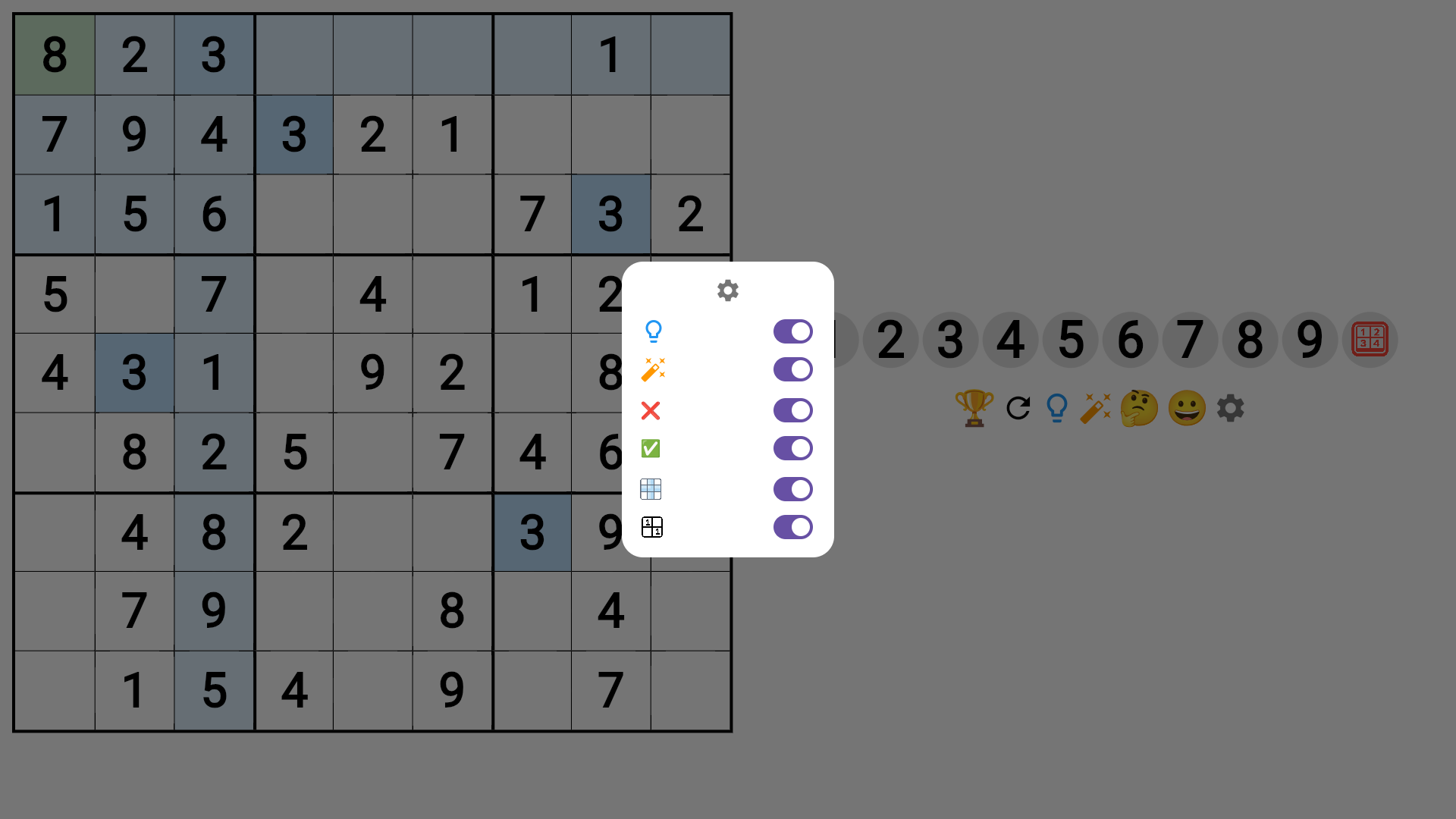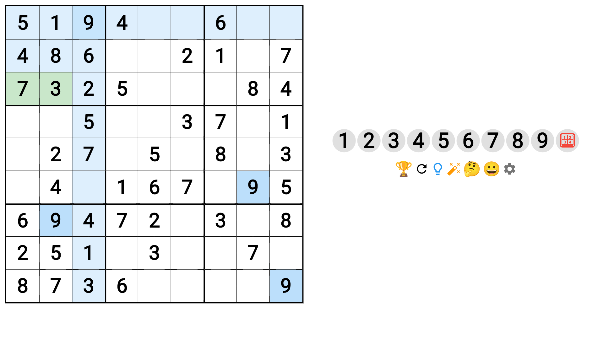 Choose a number or emoji from the row of buttons to fill the cell – or switch to the Number → Cell mode for faster input.